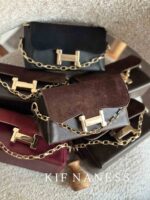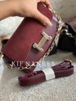 زنجیر فلزی و بند بلند چرمی دارد